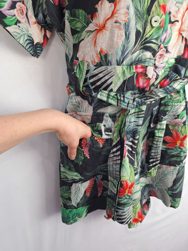 Witchery Jungle Hibiscus Linen Playsuit Size 12