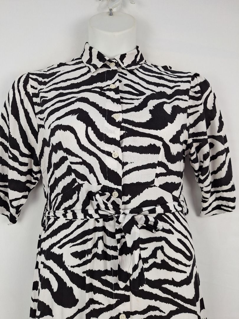 Zibi London Button Down Zebra Print Dress Size XL