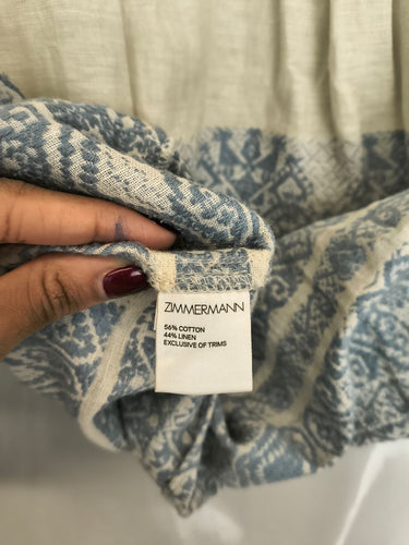 Zimmermann Bohemian Jacquard Linen Blend Blouse Size S