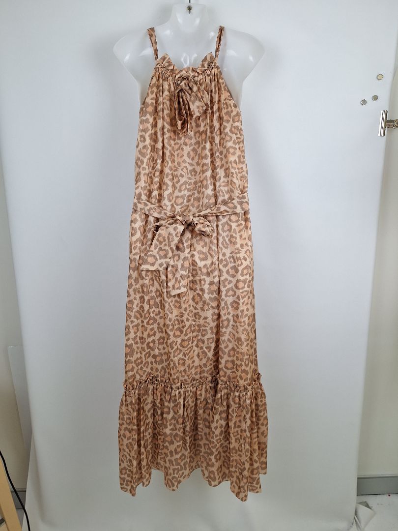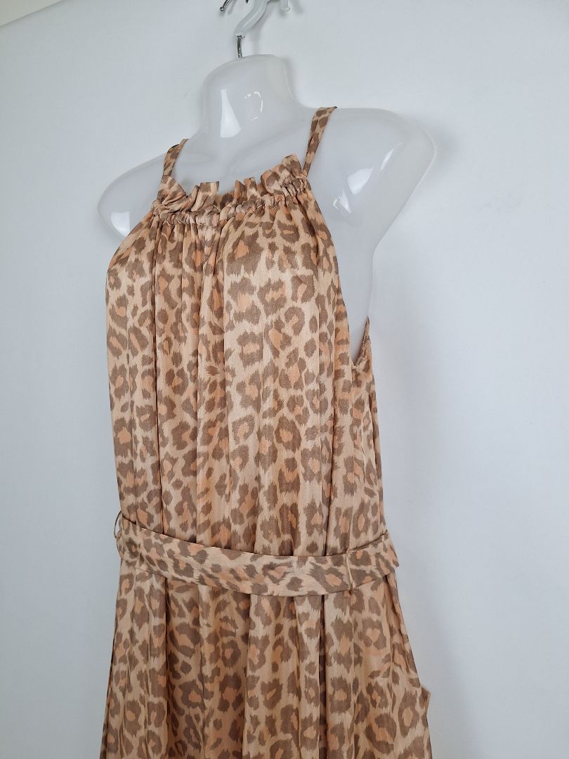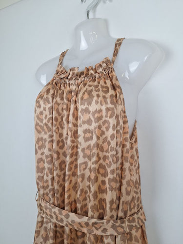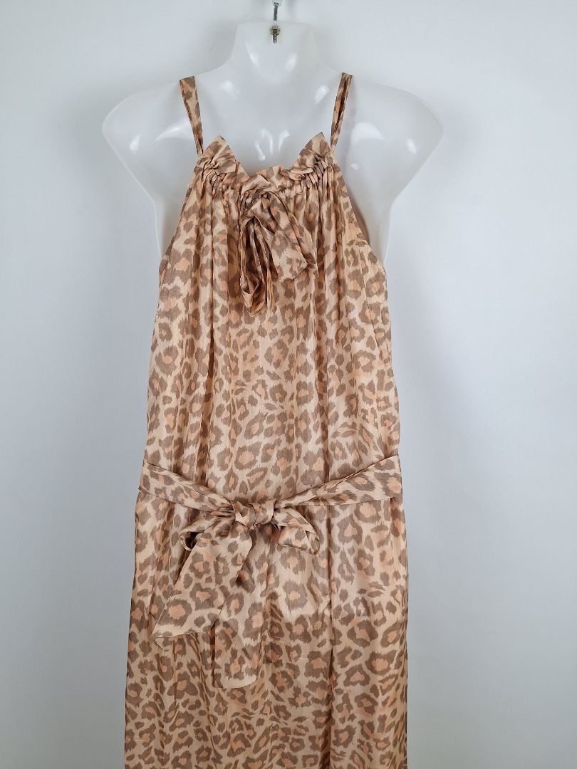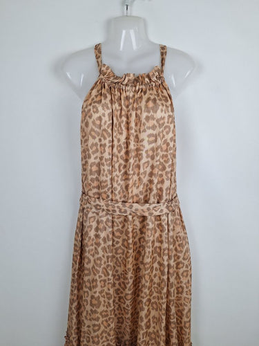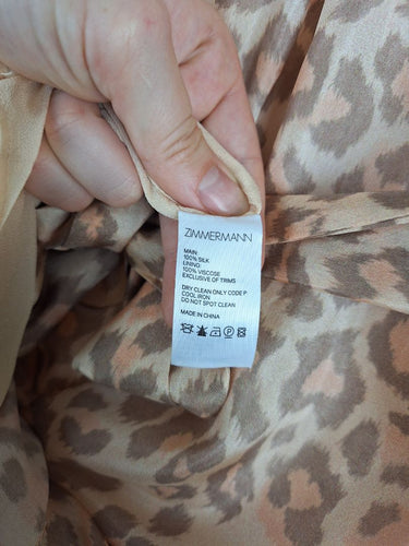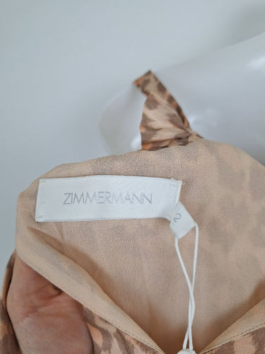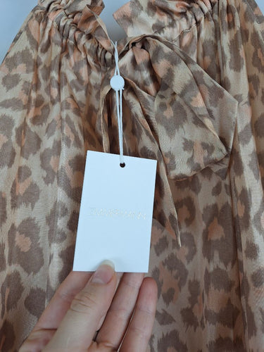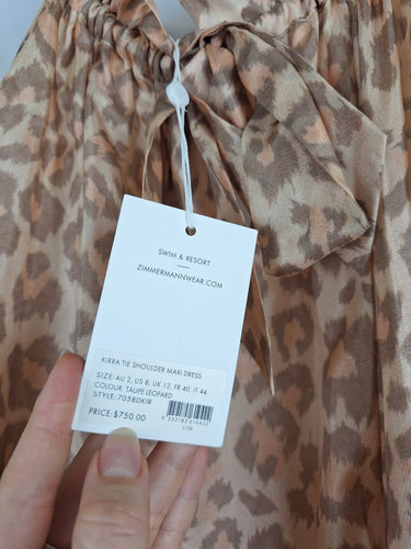 Zimmermann Taupe Leopard Kirra Shoulder Tie Maxi Dress Size 12